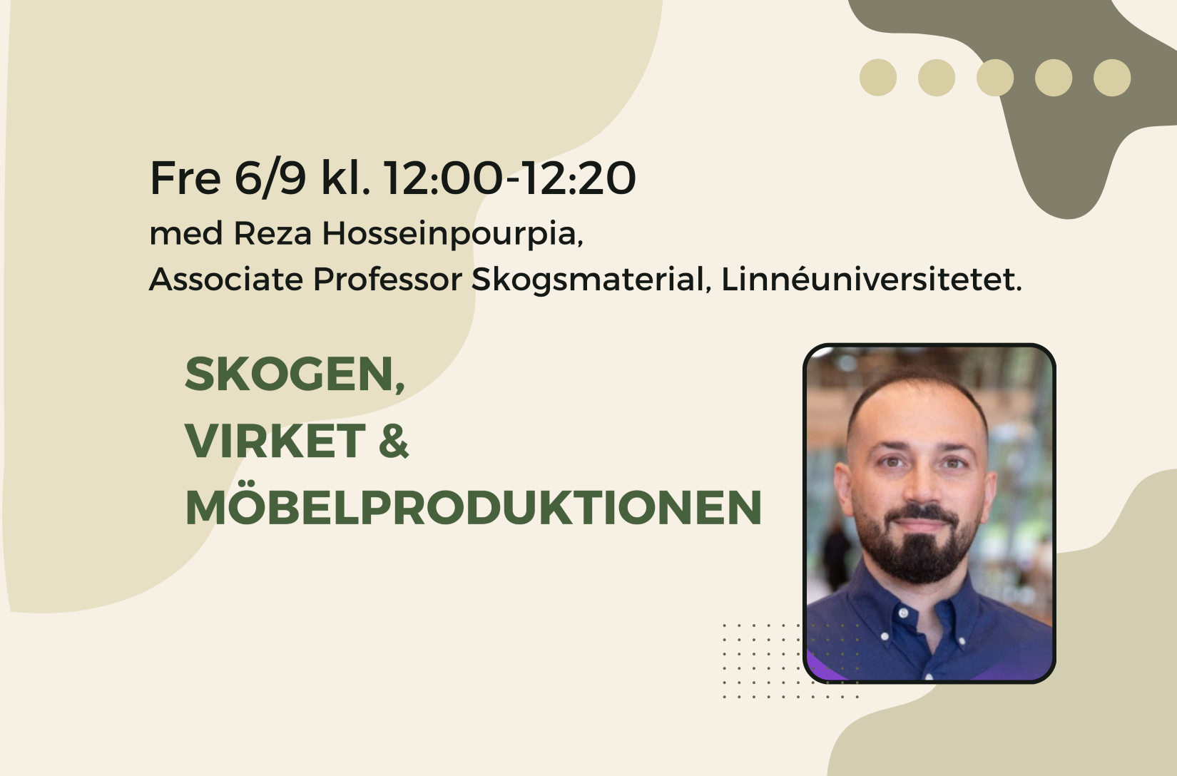 Häng med när vi rätar ut trävetenskapens koppling till inredningsbranschen med Reza Hosseinpourpia, Associate Professor Skogsmaterial, Linnéuniversitetet.