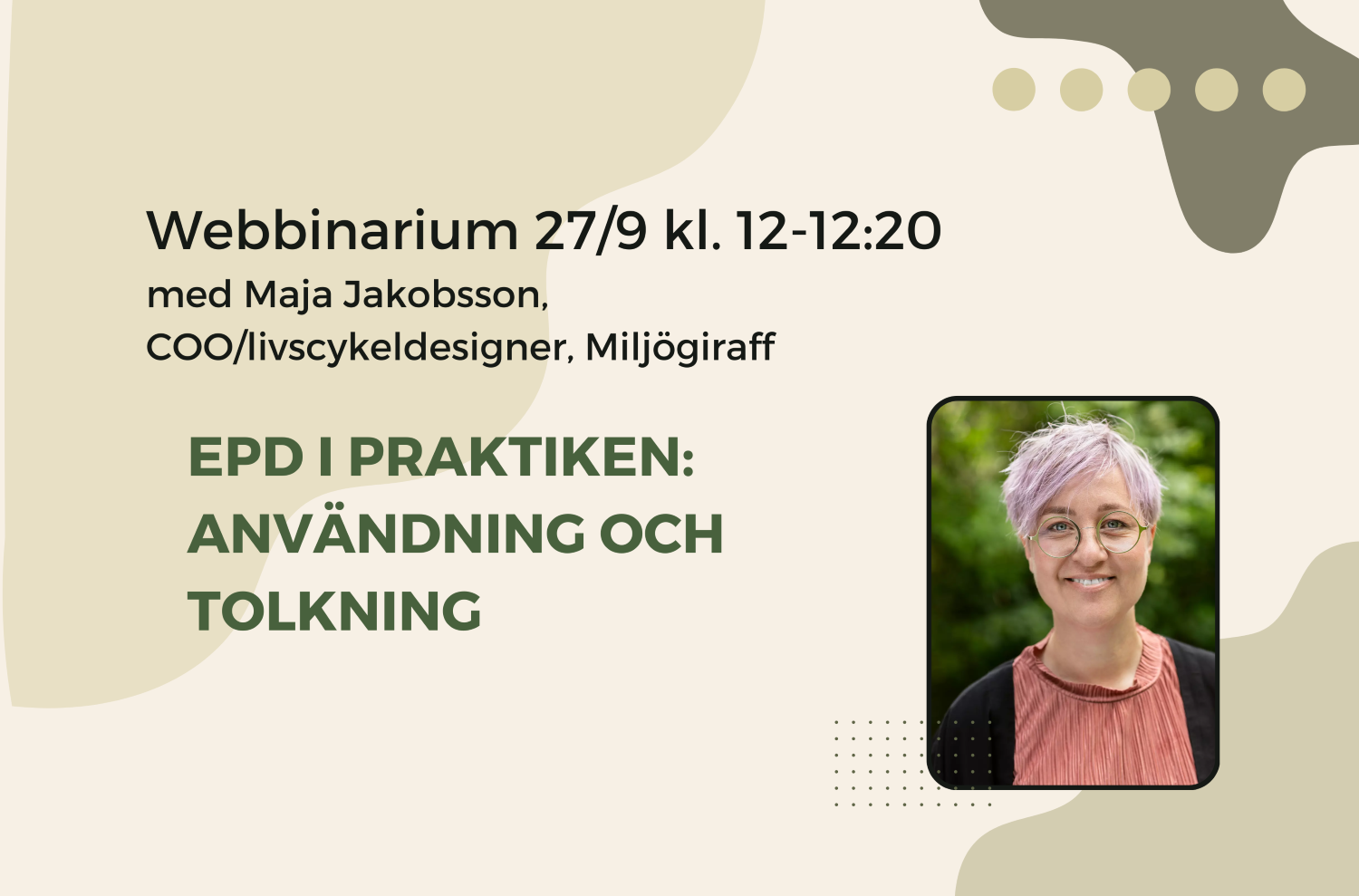 Hur kan du som inredare och arkitekt använda dig av Environmental Product Declaration (EPD) i ditt arbete? Hur kan en producent använda sig av en EPD för att göra mer hållbara val i produktion och design av möbler? Välkommen att lära dig mer om EPD tillsammans med oss när vi gästas av Maja Jakobsson, COO/livscykeldesigner, Miljögiraff