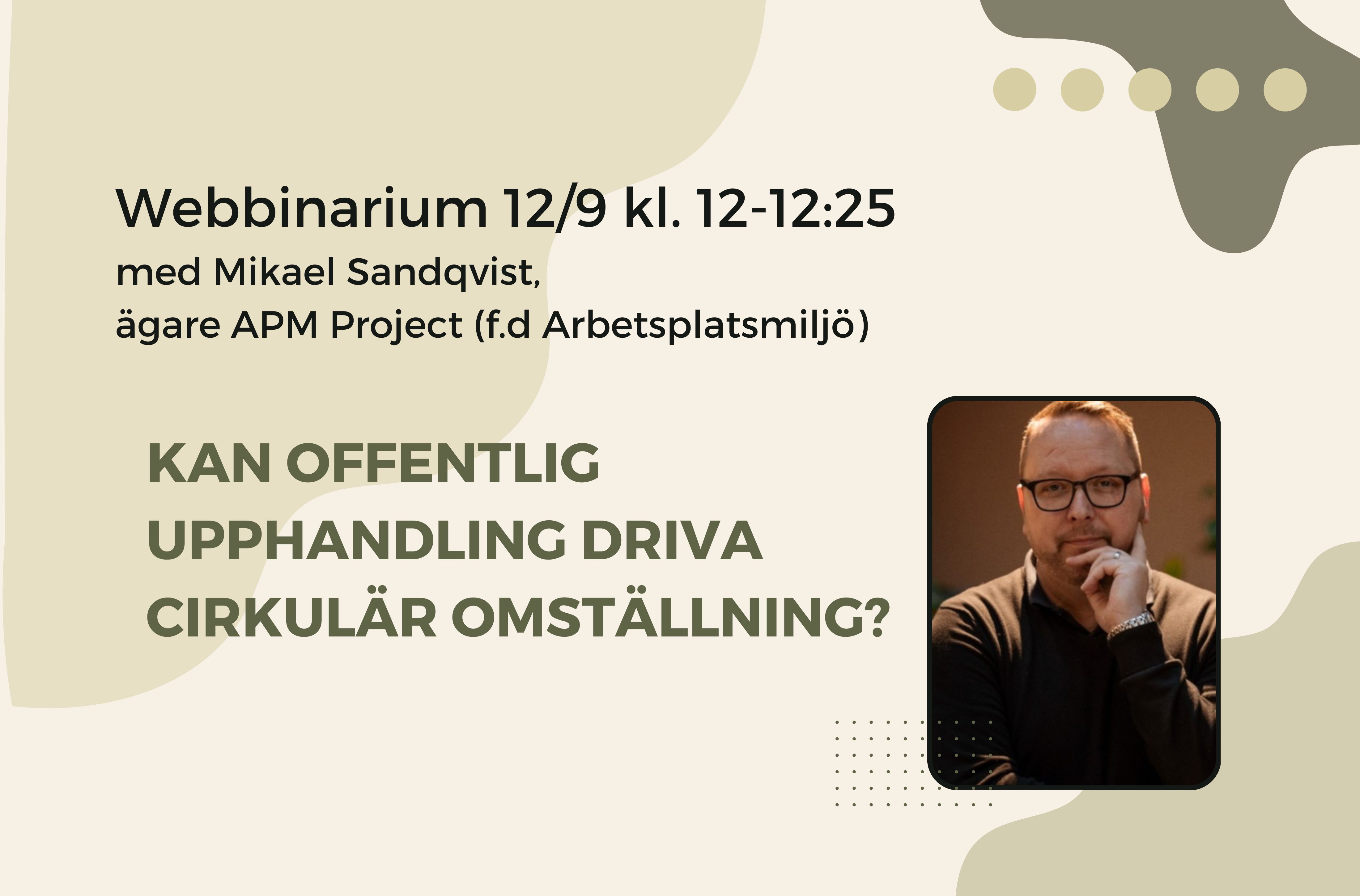 Hur ser dagens upphandlings- och inköpsprocess ut, och hur skulle den kunna utvecklas för att bättre stödja cirkulära lösningar? Vilka krav behöver justeras? Kan vi producenter bidra, trots att vi sällan är en del av dialogen?