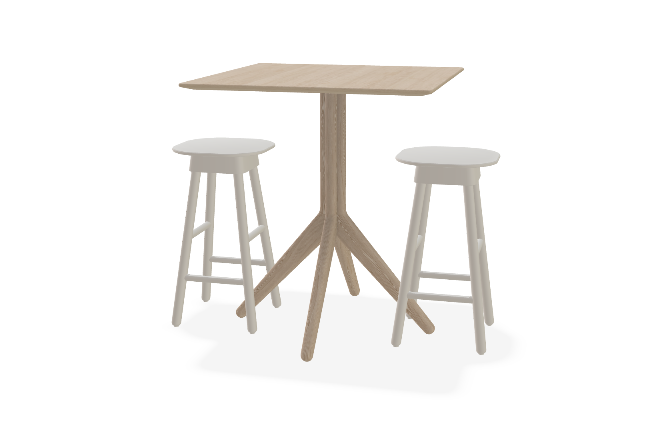 Bord deklarerat med Möbelfakta och Environmental product declaration (EPD). Sargfritt träpelarbord med förgrenat stativ helt i massivt trä. Limfri montering och designat för ett cirkulärt möbelflöde. Pelarbordet har en distinkt och elegant profil och ger möjlighet för fri sittning vid bordet.