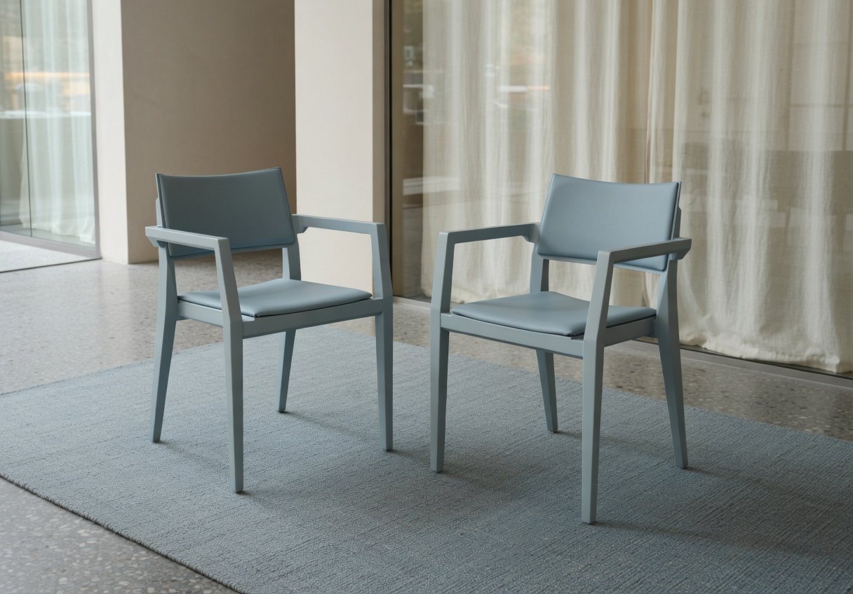 Stomme i massivträ, skålad sits och rundad rygg i fanerad björkplywood. Tova helkarm är stapelbar och eventuell klädd sits kan enkelt separeras för omklädnad eller tvätt.