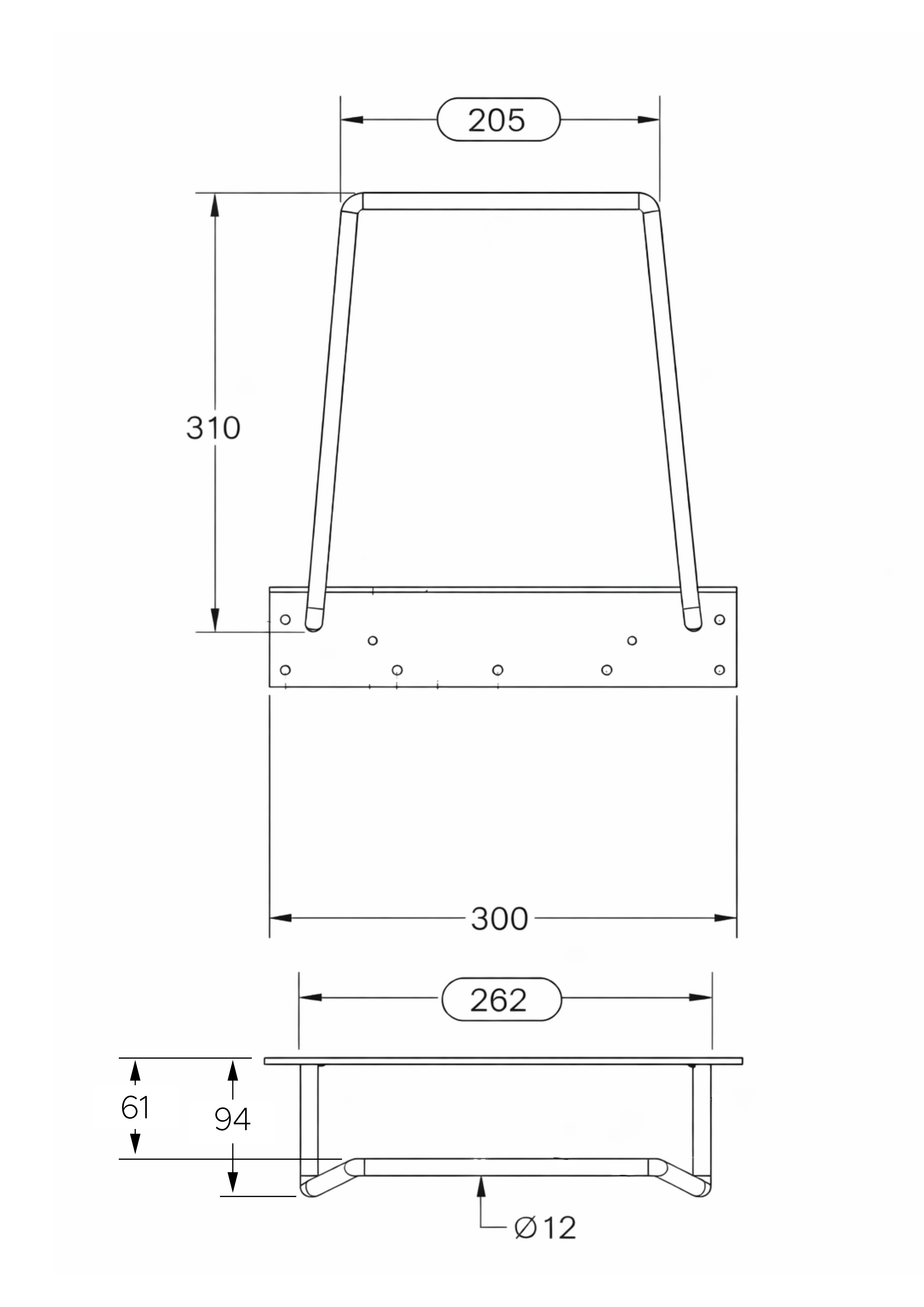 Flockad upphängningsbåge som passar samtliga stolar i Tova-serien (med undantag för Tova helkarm) och är även kompatibel med andra stolmodeller. Den möjliggör upphängning av stolar under bordsskivan och underlättar därmed städning och förvaring.